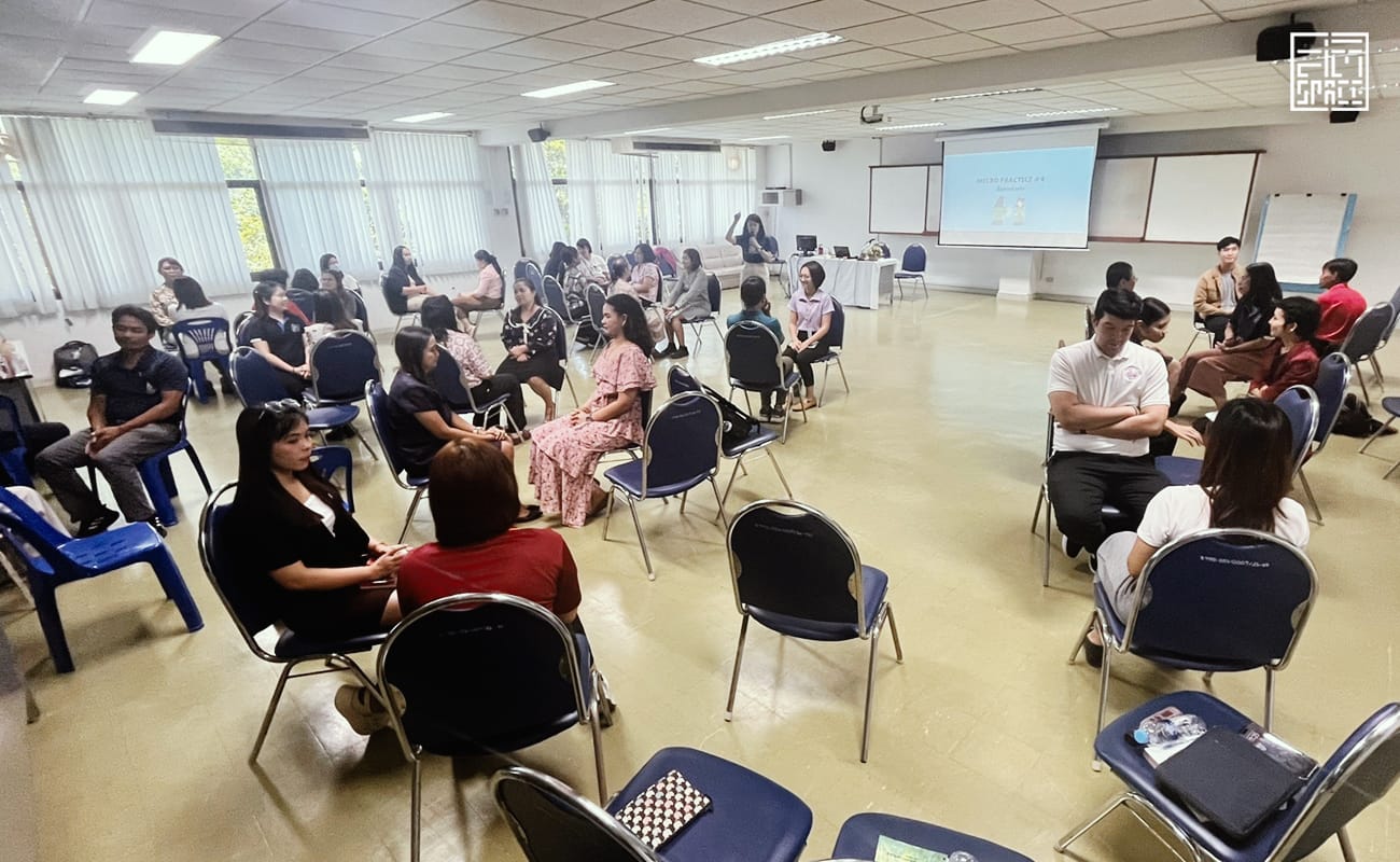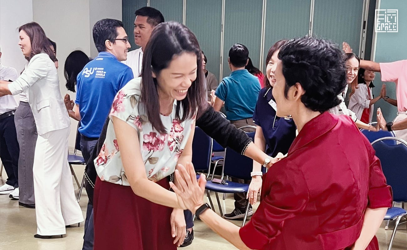 เริ่มต้นจากการพบเจองานของ ‘สติ Space’ ที่แผ่ขยับเข้ามาเขย่าพื้นที่ภายในใจทุกคนให้เกิด ‘สติ’ ผู้ช่วยศาสตราจารย์ ดร.ปาริชาติ มณีมัย คณะพาณิชยศาสตร์และการจัดการ มหาวิทยาลัยสงขลานครินทร์ วิทยาเขตตรัง จึงสนใจในมุมคิด นำมาสู่การเชื่อมสัมพันธ์ แบ่งปันมุมมองในการสร้างพื้นที่สติในรั้วมหาวิทยาลัย กลางเดือนกุมภาพันธ์ที่ผ่านมา ทีมสติ Space ของเราจึงได้เดินทางมายัง มหาวิทยาลัยสงขลานครินทร์ วิทยาเขตตรัง เพื่อมอบพื้นที่แห่งสติผ่านการจัดกิจกรรมหลากหลายในหมวด ‘การเชื่อมความสัมพันธ์’ เพื่อพัฒนาความเข้าใจในตนเอง เพื่อนร่วมงาน รวมถึงลูกศิษย์ในคณะ ให้แก่คณาอาจารย์ในคณะพาณิชยศาสตร์และการจัดการ มหาวิทยาลัยสงขลานครินทร์ วิทยาเขตตรัง
